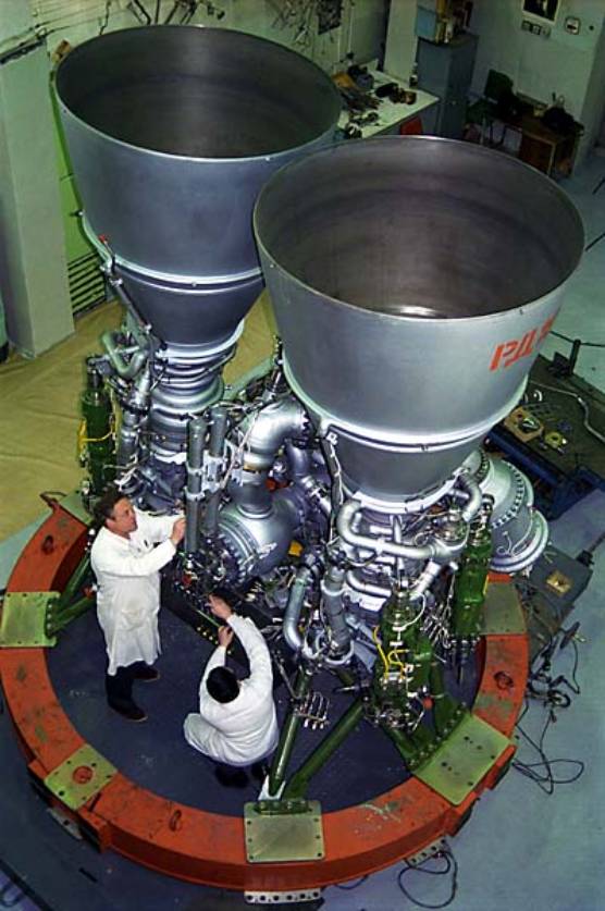 ЖРД РД-180В начале 1996г проект двигателя РД-180 НПО Энергомаш был признан победителем конкурса на разработку и поставку двигателя первой ступени для модернизированной РН "Атлас" американской компании Локхид Мартин. Это двухкамерный двигатель с дожиганием окислительного генераторного газа, с управлением вектором тяги благодаря качания каждой камеры в двух плоскостях, с возможностью обеспечения глубокого дросселирования тяги двигателя в полете. Данная конструкция базируется на хорошо проверенных конструкциях узлов и элементов двигателей РД-170/171. Создание мощного двигателя первой ступени осуществлено в сжатые сроки, а отработка – на малом количестве материальной части. Подписав контракт на разработку двигателя летом 1996 г., уже в ноябре 1996 г. было проведено первое огневое испытание двигателя-прототипа, а в апреле 1997 г. – огневое испытание штатного двигателя. В 1997-1998 гг успешно проведена серия огневых испытаний двигателя в составе ступени РН в США. Весной 1999 г. завершена сертификация двигателя для использования в составе РН "Атлас 3". Летом 2001г была завершена сертификация двигателя для использования в составе РН "Атлас 5".