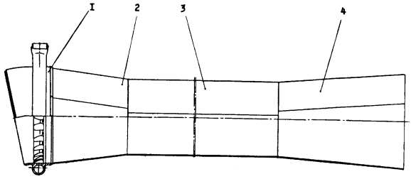 В смесителе образуется газ с избытком окислителя для наддува бака изделия. Смеситель представляет собой сварную конструкцию, состоящую из трубы 6 и кожуха 5. В пяти поперечных сечениях трубы 6 имеется по четыре равнорасположенных по окружности отверстия. К кожуху 5 приварена труба 3, соединяющаяся с полостью окислителя газогенератора. Газ от коллектора турбины через жиклер 1 поступает в трубу 6. Для понижения температуры газа до требуемой из газогенератора через жиклер 2 по трубе 3 подводится окислитель, который через отверстия в трубе 6 впрыскивается в газовый поток. Номинальные расходы газа и окислителя обеспечиваются жиклерами 7 и 2. Таблица 5. Параметры смесителя